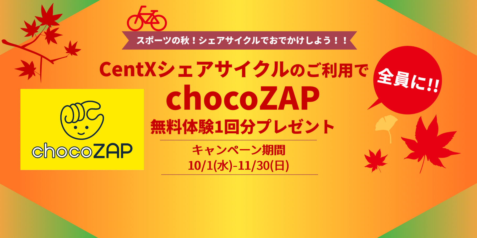 10月~11月にCentXシェアサイクルのご利用でchocoZAP無料体験1回分をプレゼント!