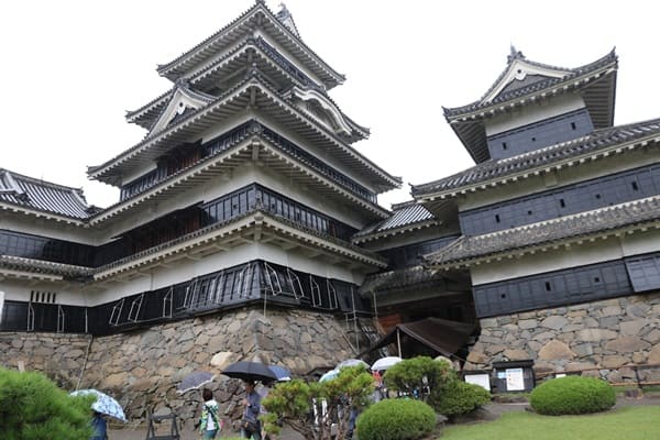 Listed as a National Treasure of Japan, Matsumoto Castle features a striking black-lacquer exterior from which it gets its nickname of "Karasu-jo" ("Crow Castle").