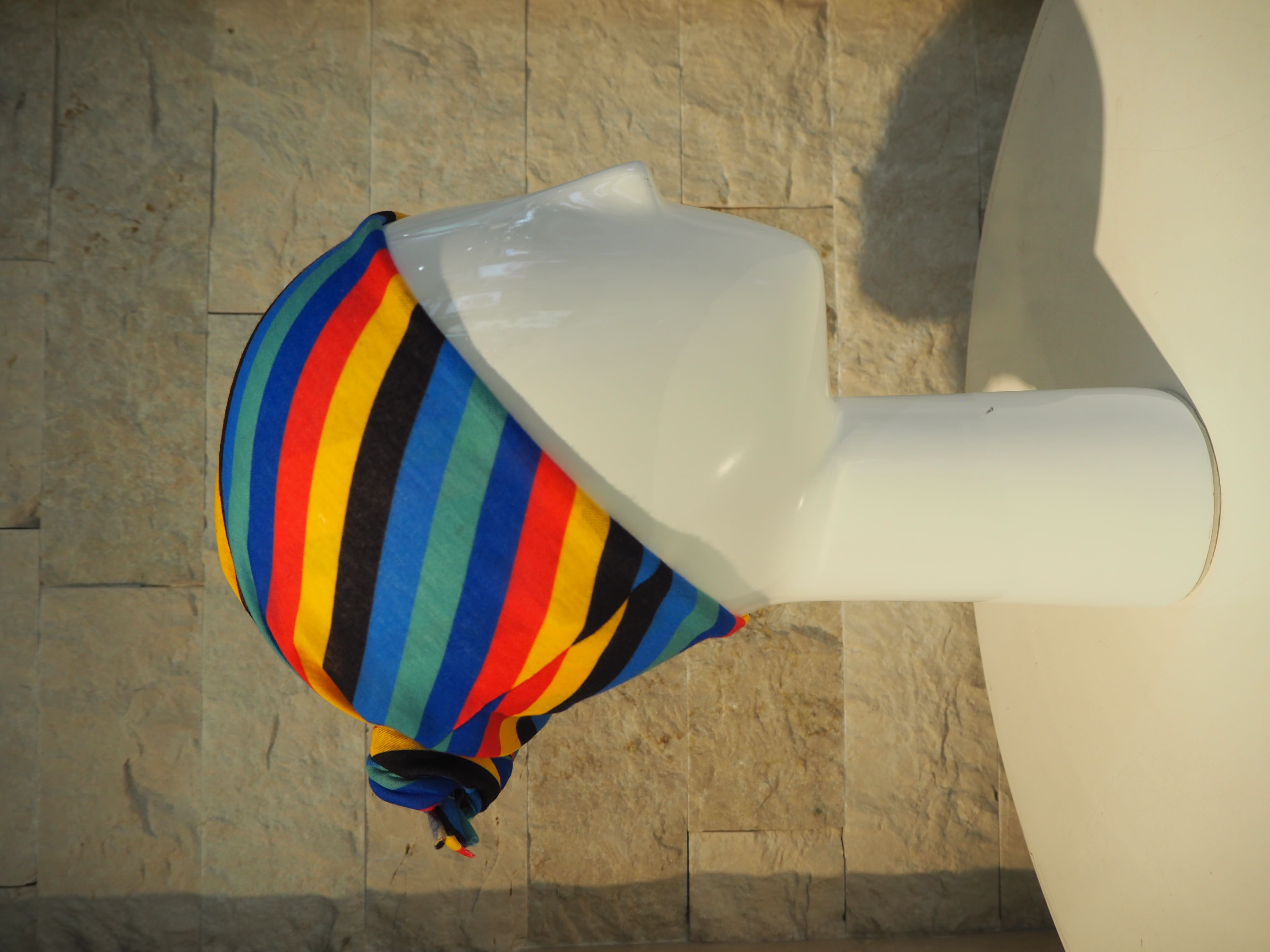 ブルーミュースカイの座席で実際に使用していた枕カバーを使ってクッションを作りました。