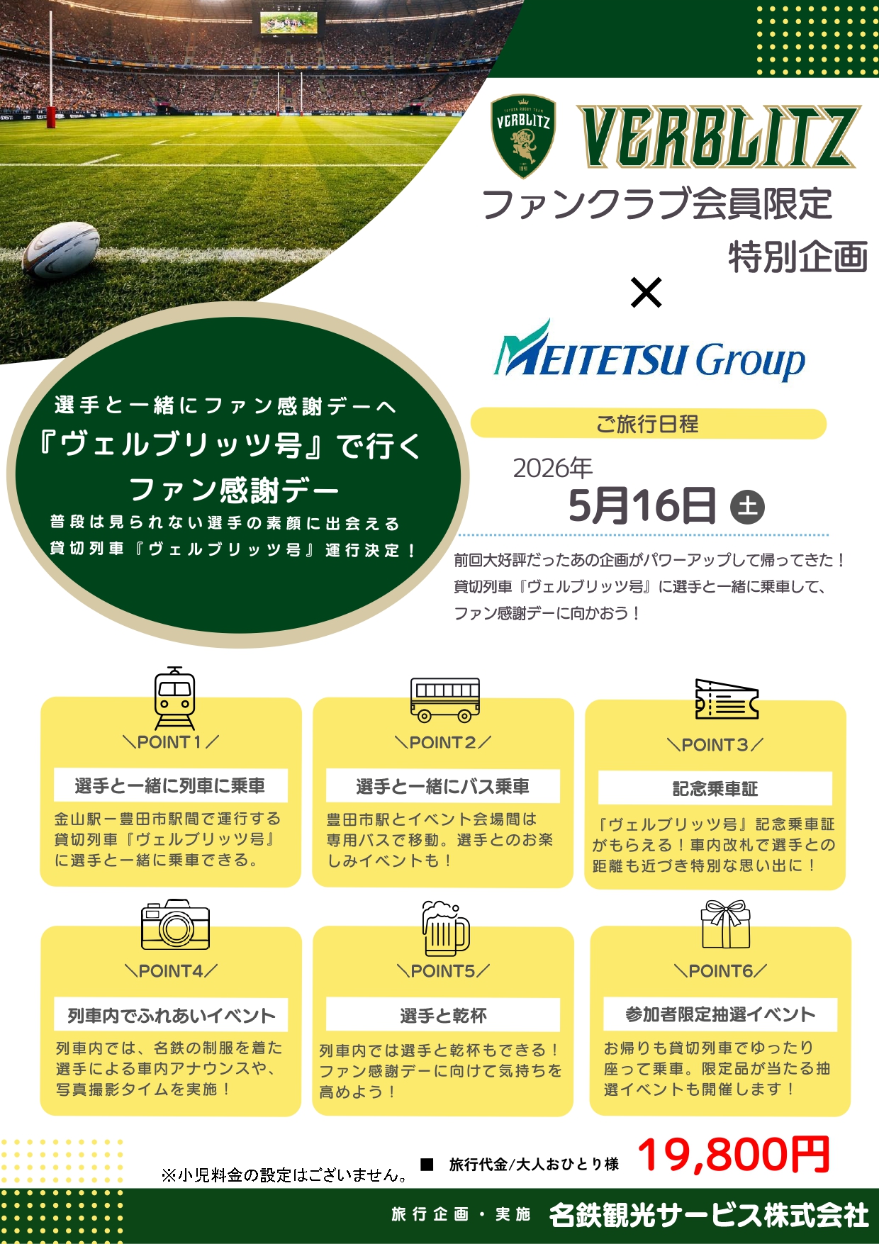 【VERBLITZ ファンクラブ会員限定特別企画】『ヴェルブリッツ号』で行くファン感謝デー