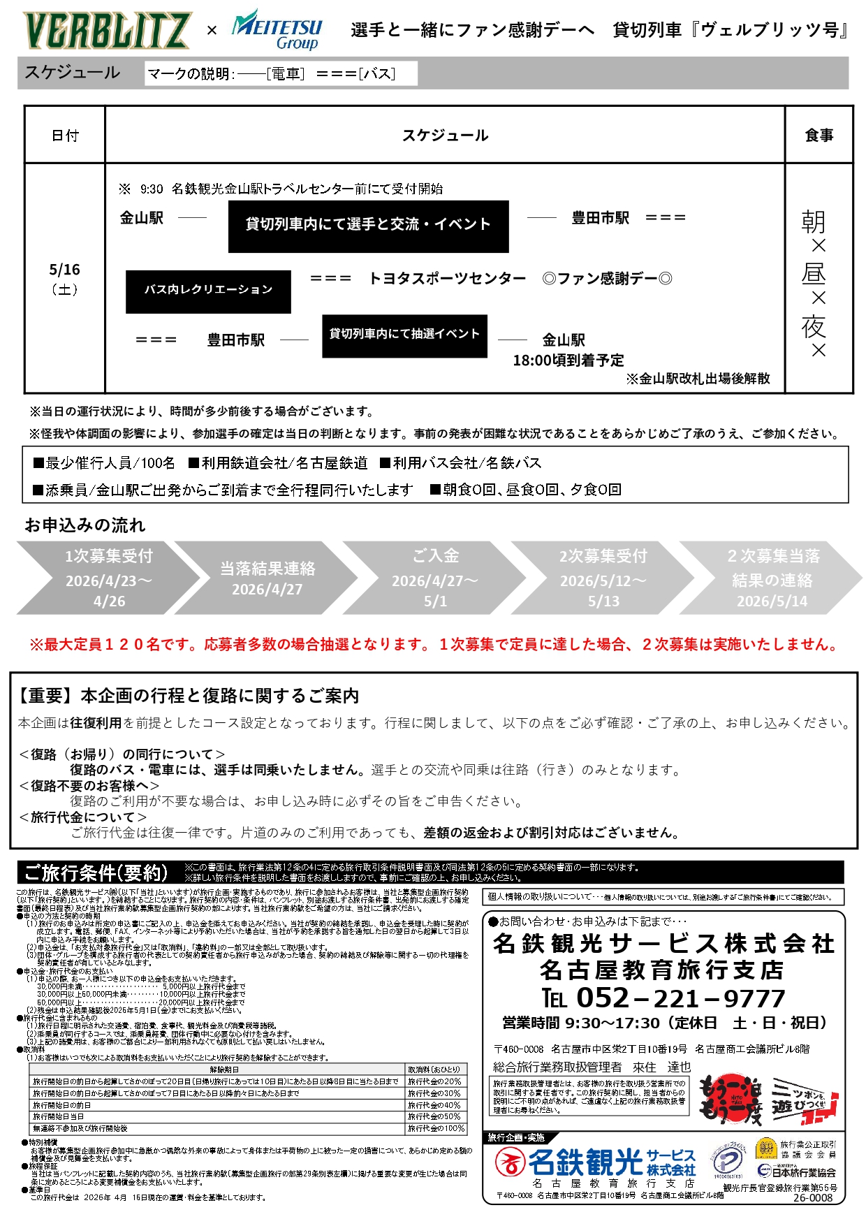 名鉄グループとトヨタヴェルブリッツのコラボ企画、貸切列車「ヴェルブリッツ号」を運行いたします!