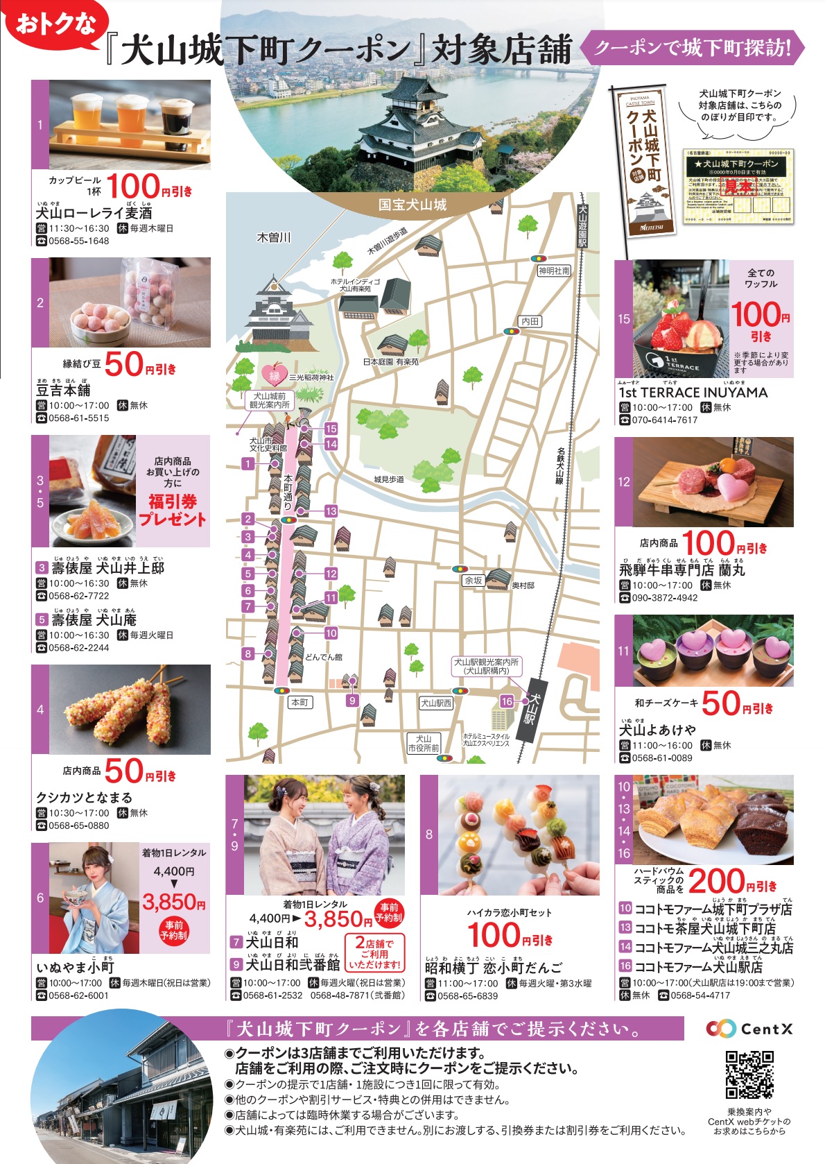 ※犬山城下町クーポンの一部対象店舗において、臨時休業や営業時間の変更が発生する場合がございます。