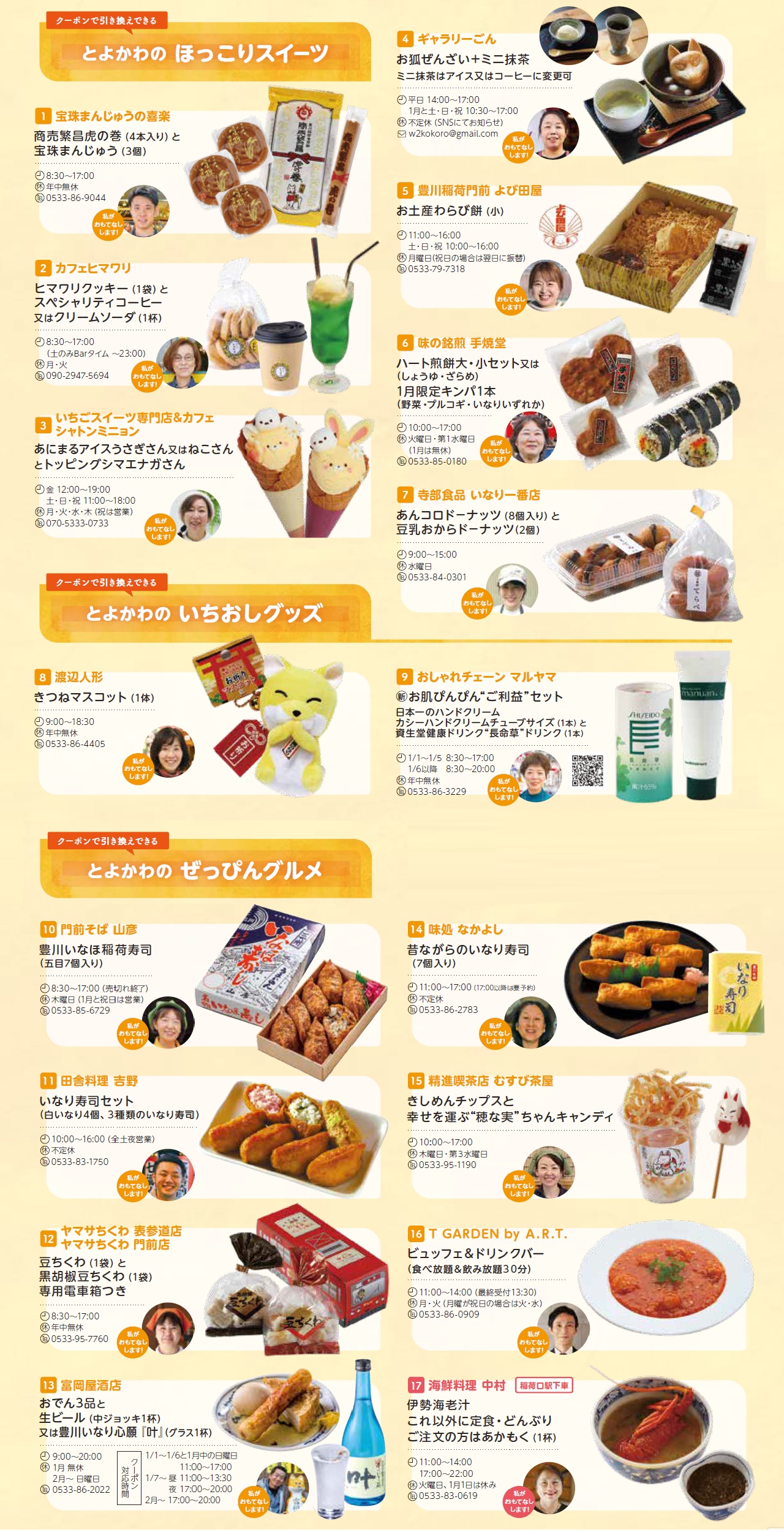 ※「お参歩クーポン」および「とよかわ開運券」の金券利用時はおつりはでません。