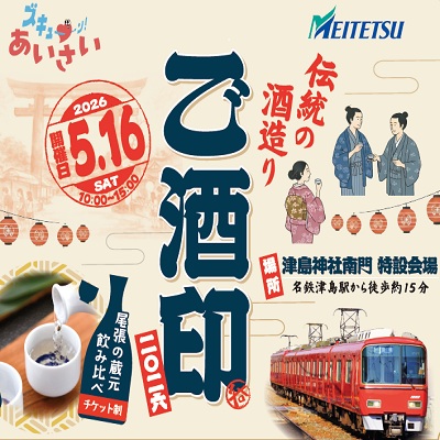 津島市・愛西市・蟹江町の7つの酒蔵が集結するイベント「ご酒印2026」に名鉄ブースを出店します。