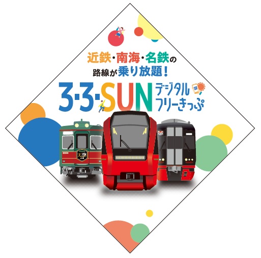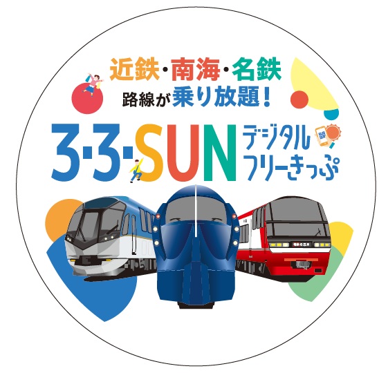 名鉄、近鉄、南海の3社は、2025年10月11日(土)から「3・3・SUNデジタルフリーきっぷ オリジナル入場券セット」を発売するほか、各社車両への系統板の掲出や記念スタンプの設置を行います!