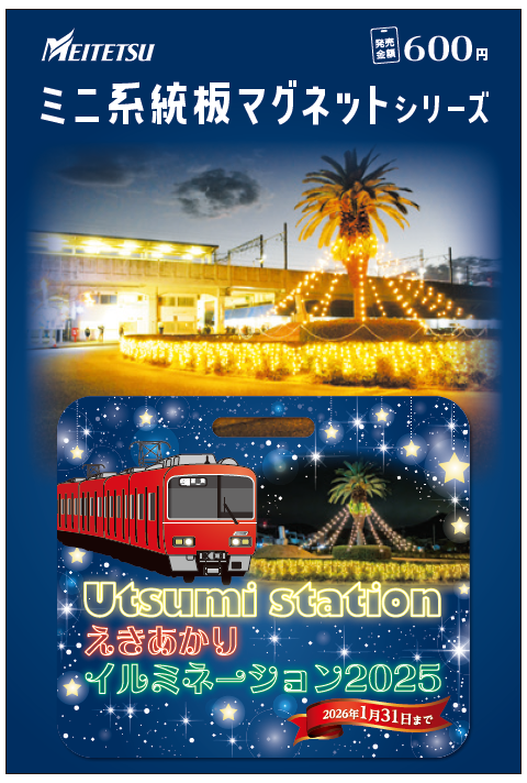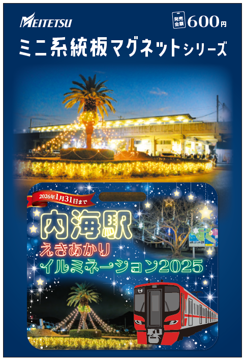 ・ミニ系統板マグネット「内海駅えきあかりイルミネーション2025PR」デザイン(2種) 各600円