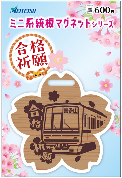受験シーズン本番を控えた受験生を応援するため、桜の木の素材を使用した記念系統板を掲出して運行いたします。そのデザインを使用したミニ系統板マグネットを販売します。