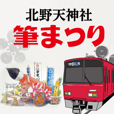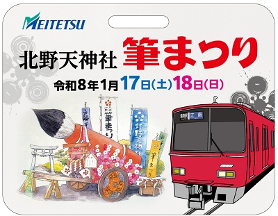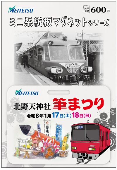 令和8年1月17日(土)、18日(日)に開催される、北野天神社「筆まつり」をPRするため記念系統板を掲出して運行いたします。また、同デザインのミニ系統板マグネットも販売します。