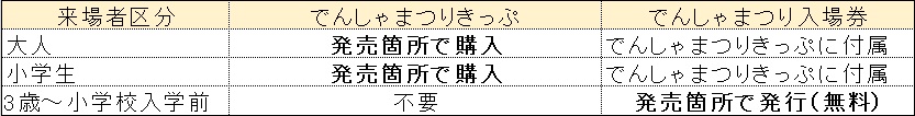 ただし、「でんしゃまつり入場券」および「粗品引換券」はでんしゃまつり当日のみ有効