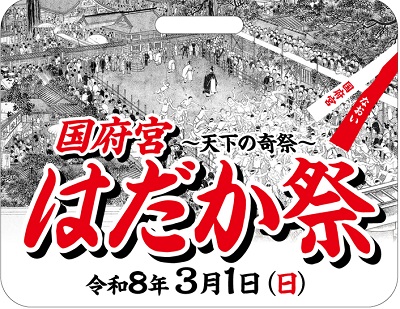 約1250年の歴史を誇る伝統神事「国府宮はだか祭(儺追神事(なおいしんじ))」が、2026年3月1日(日)に尾張大國霊神社にて開催されます。開催にあわせてPR記念系統板を掲出して運行するほか、同デザインのミニ系統板マグネットを事前に販売いたします。