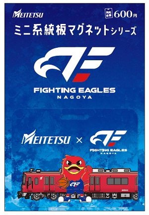 ①車両に掲出の「ファイティングイーグルス名古屋 」コラボPR系統板をイメージしたミニ系統板マグネット