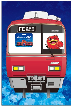 ②FE名古屋の選手と名鉄電車のイラストが描かれたオリジナルコラボミニタオル