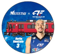 ➂FE名古屋の選手と名鉄電車のイラストが描かれたオリジナル缶バッジ