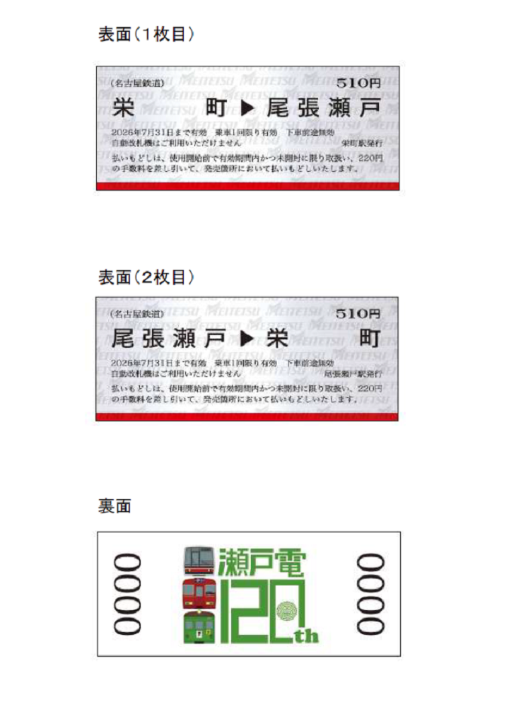 ・瀬戸線120周年「タイルマグネット付き記念乗車券セット」