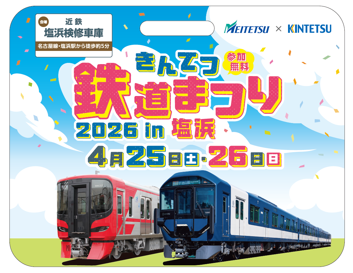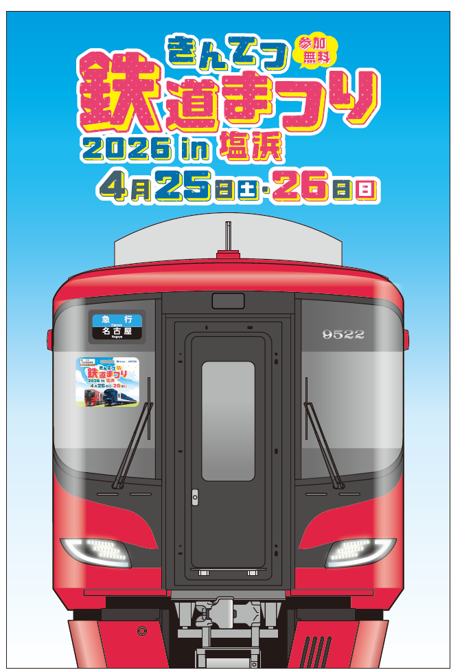 「きんてつ鉄道まつり2026in塩浜」が、4月25日(土)・26日(日)に塩浜検修車庫にて開催されます。