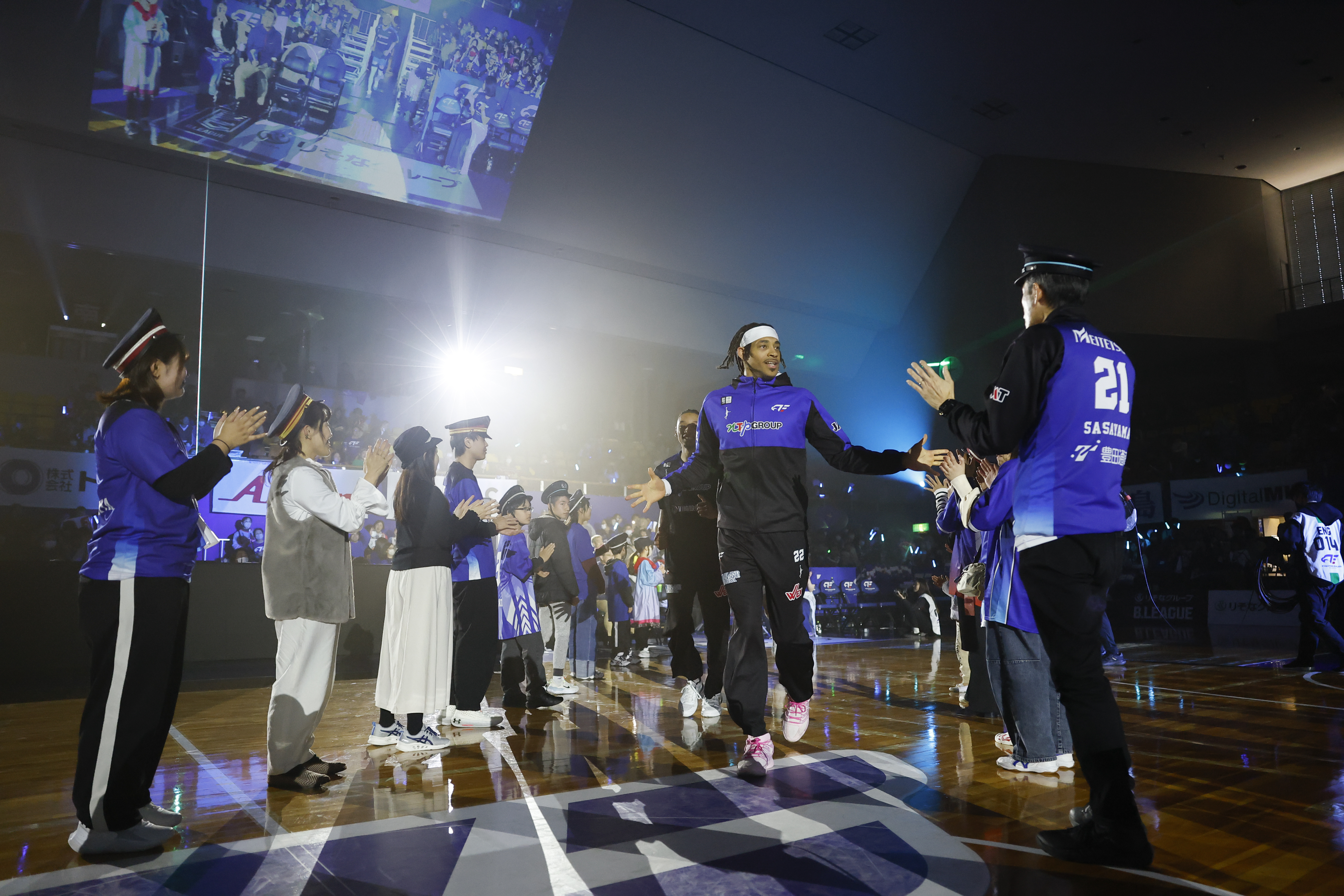 選手入場のシーンでは、駅員帽を被った子どもたちが花道を作り、元気いっぱいのお出迎えを実施しました。また、来場者全員に「名鉄×WAO!ロゴ」とFE名古屋公式マスコットキャラクター「リードくん」がデザインされた「オリジナル応援ハリセン」をプレゼント。こちらは豪華賞品の当たり付となっており、多くの方にお楽しみいただきました。