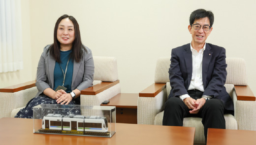 「研修を受けた従業員が、道に迷った認知症の高齢者を交番にお連れし、ご家族と再会するお手伝いをしました。そういうエピソードを聞くとうれしいです」と語る豊橋鉄道の赤川さん