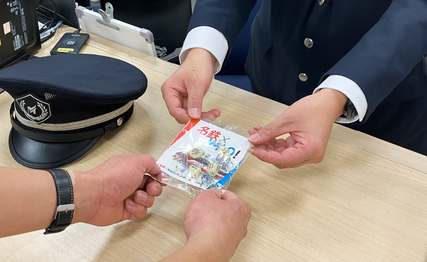 鉄道現場の従業員に対し、飴を配布。「おいしい!」と好評だった