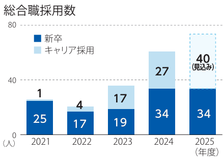当社では組織の多様性を実現すべく、近年キャリア採用を強化しています。2024年度のエンゲージメント調査においては、職場の心理的安全性や職場の人間関係に関する項目について、キャリア採用者のスコアが相対的に低く、職場の受け入れ体制に課題があるのではという仮説を立てました。そこで2025年度より、入社した社員の定着を促し、速やかに自身の能力を発揮できる環境を整えるため、キャリア採用者を対象に経営層との交流プログラムを実施しているほか、ランチ交流会の費用補助や、受け入れ側の上司に対して事前レクチャーを行うなど、溶け込みやすい風土醸成に努めています。