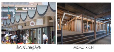 また、最近では資源の地産地消の観点から地域建材の利用を進めており、2024年12月に熱田神宮の最寄り駅である神宮前駅前で全面開業したあつたnagAya、名鉄犬山線布袋駅高架下で開業したMOKU KICHIでそれぞれ愛知県の「木の香る都市(まち)づくり事業」に採択され、地元木材を使用しています。