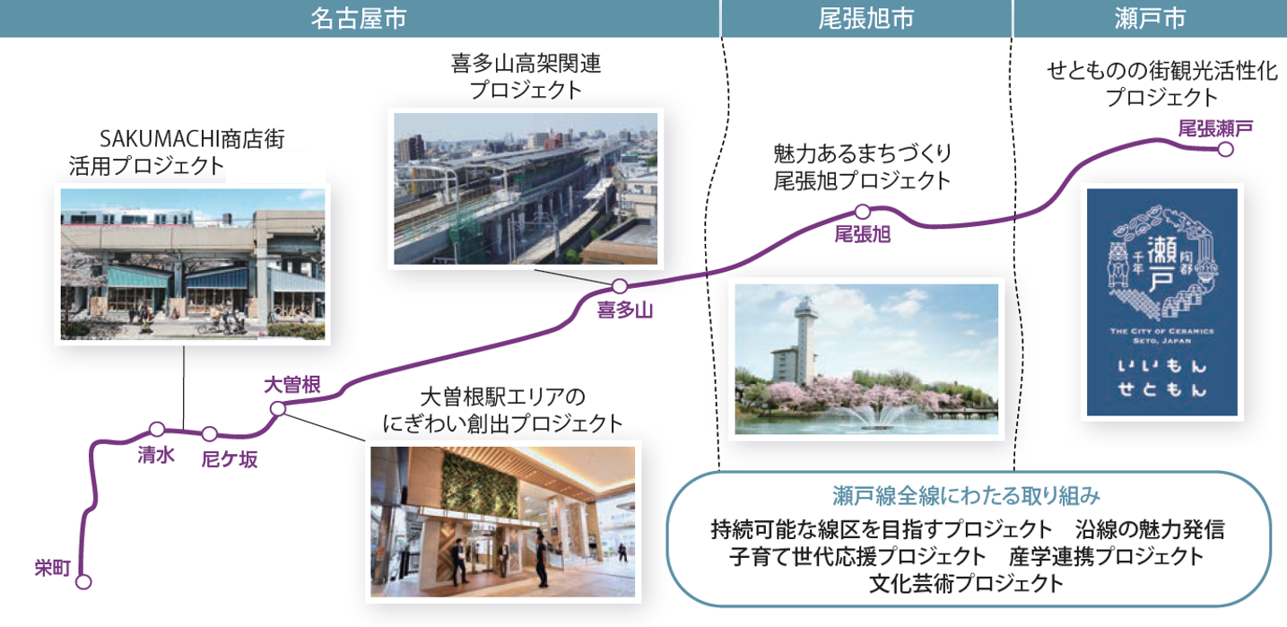 当社および当社グループは、2024年3月より栄町駅(名古屋市東区)~尾張瀬戸駅(瀬戸市)を結ぶ瀬戸線沿線で「瀬戸線沿線価値向上プロジェクト」に取り組んでいます。