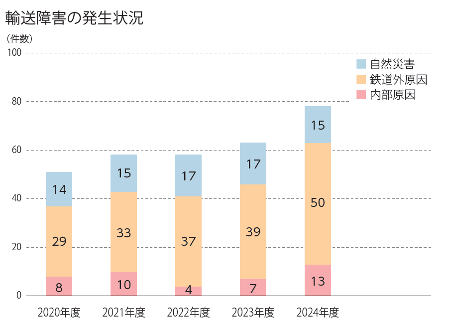 | 輸送障害 | 列車に運休または30分以上の遅延が生じた事態であって、 鉄道運転事故以外のもの |