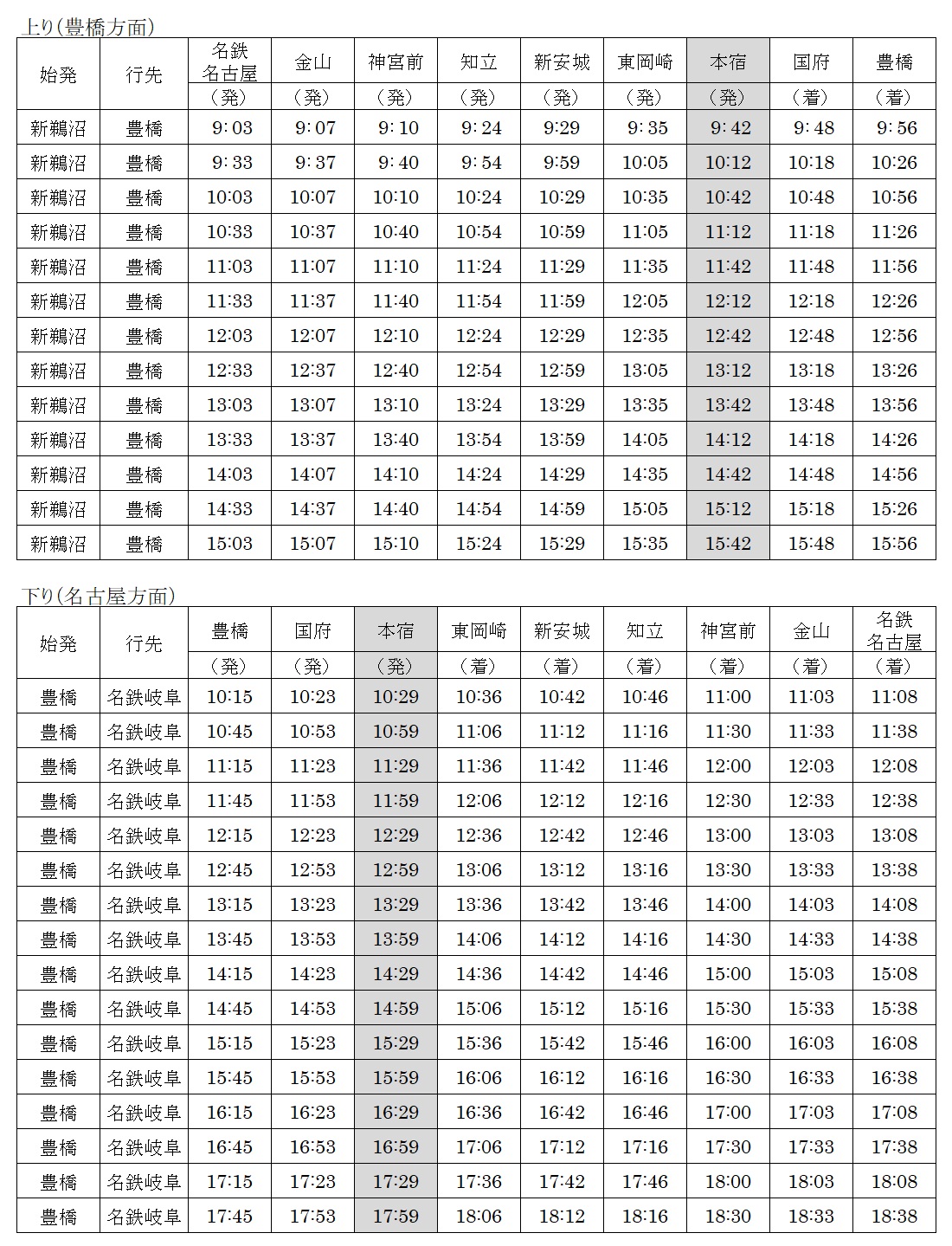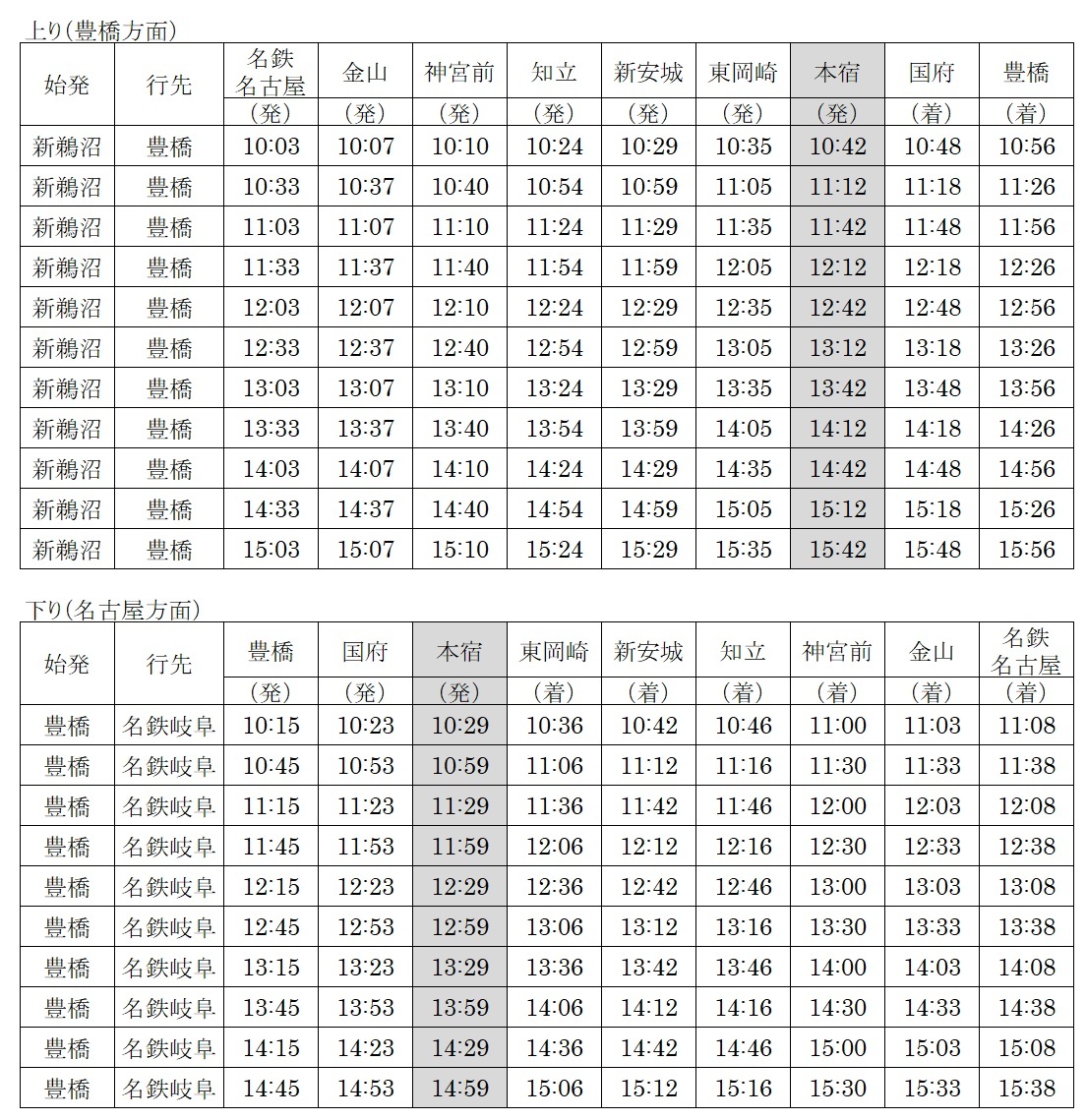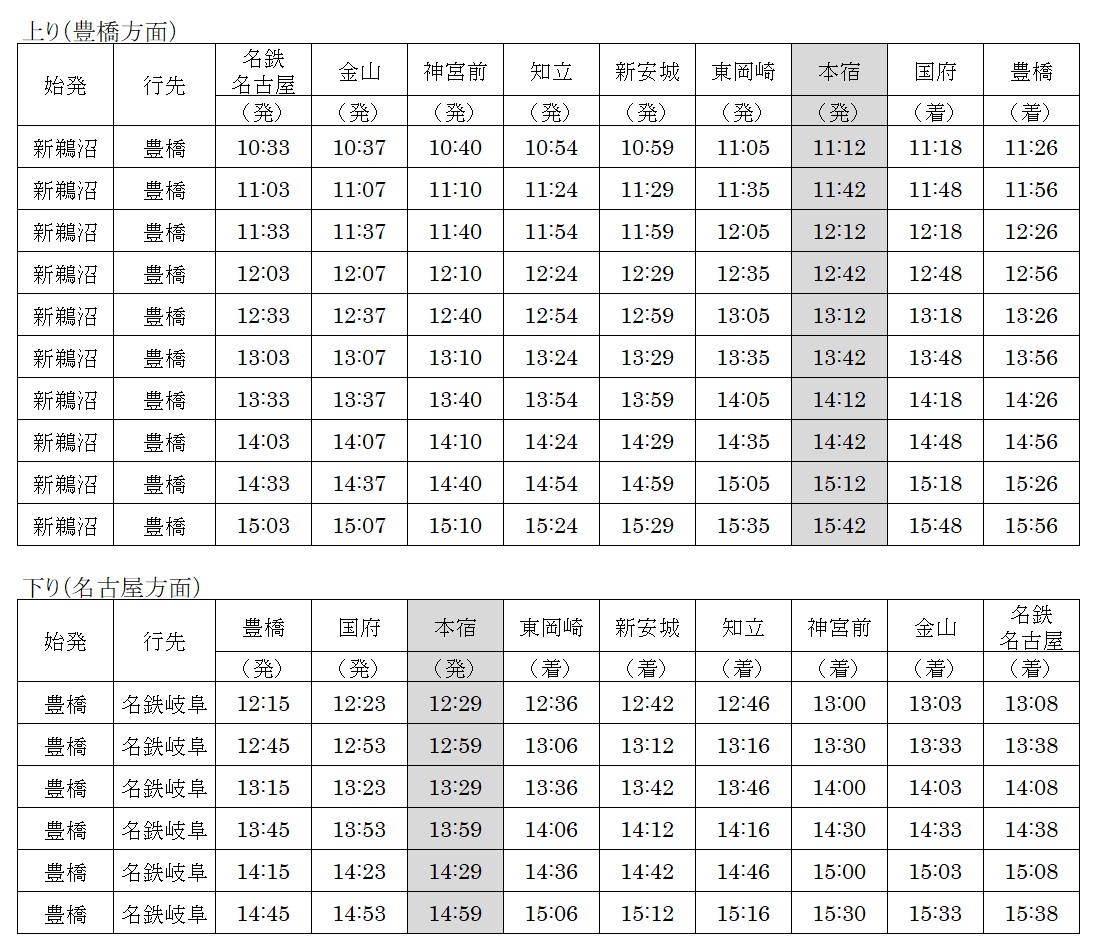 本宿駅に一部の「豊橋行 特急」および「名鉄岐阜行 特急」を臨時に停車させ、利便性の向上を図ります。