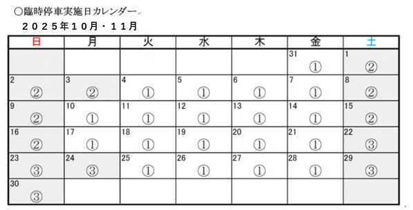 ※①~③の臨時停車パターンについては下のカレンダーをご参照ください